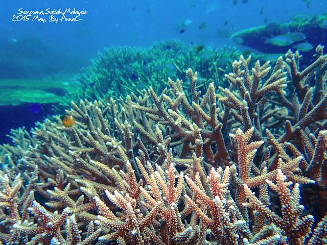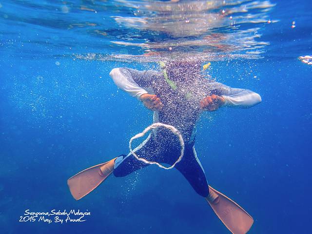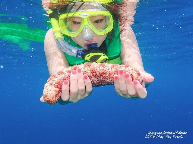记得十岁曾到三亚去深潜过,记忆最深刻的就是耳朵痛,自己一直没会游泳的原因是不会换气,所以不太敢下水,但这次看了很多别人拍的海里照片,实在太太吸引我了,shafifie让我把头埋到水下的瞬间,真的真的被惊艳到了