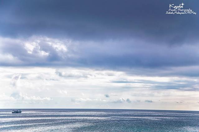 快艇一路的风景也是千变万化,刚刚离开时乌云密布,黑压压的一片,而且飘得很低,感觉跟海平面相接着一样,过一会又有了蓝天白云。感慨“地球是圆的”这一事实,不然怎么会看起来天空与海面合为一体呢