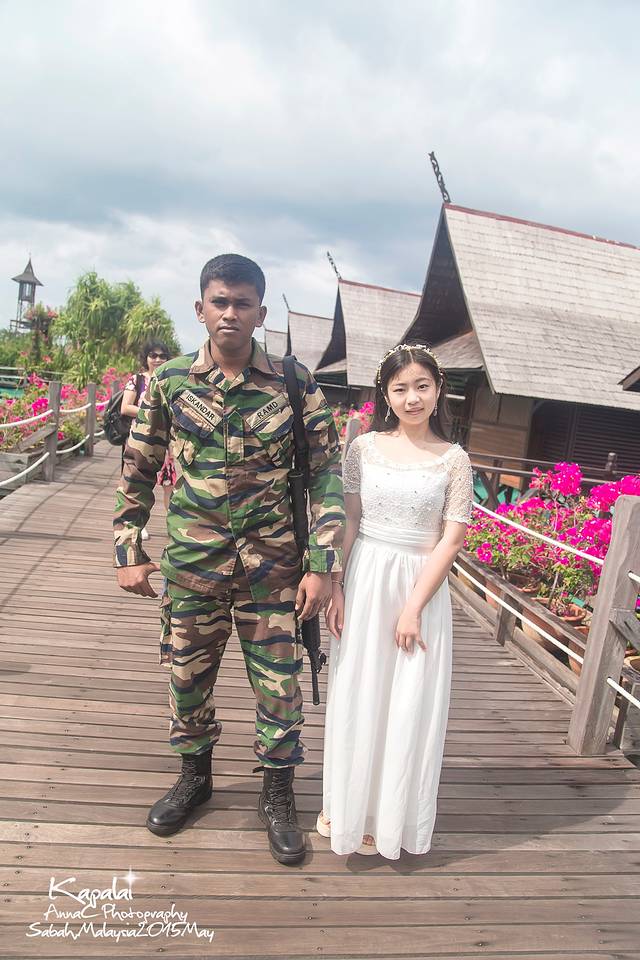吃饱喝足后就开始在岛上转悠,昨天几乎都在水下,整个Kapalai都不大,来的第一天还觉得可能迷路,但大致走过一遍后便能记熟。偶遇拿枪的军人,害羞的找人家合了个影,我以为人家会很习惯,毕竟岛上每天那么多客人,没想到他比我还羞涩,我说了半天好话才勉为其难的拍了一张,是因为我长得不够好看么