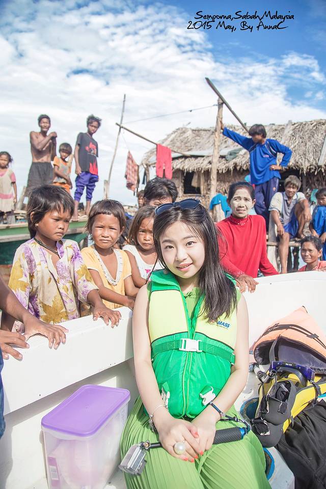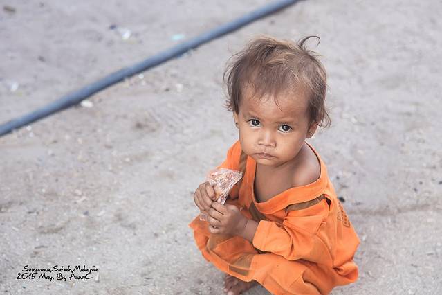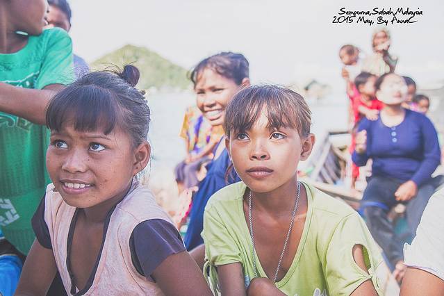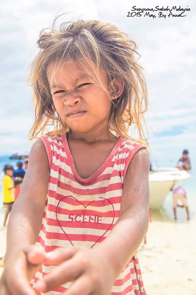 他们划着简陋的小木船朝我们靠近,慢慢的包围整个船,队长说他们不会上船,这个时候也比较适合拍照,但我已经手忙脚乱了,被面前的情形吓到,巴瑶族的孩子和大人们全趴在船边,等着要食物