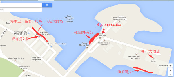 中间的坐标就是我们去的卡帕莱,站在卡帕莱的餐厅,往右边看就是马步岛,左边看就是诗巴丹,离得很近~