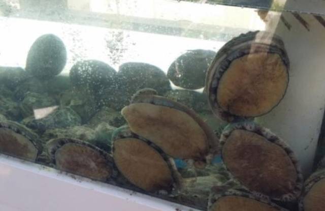 店内有个透明的玻璃缸,里面都是新鲜的大个活鲍鱼~