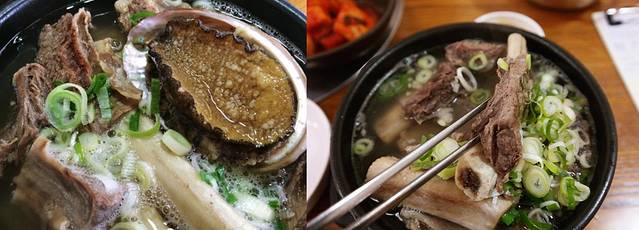 点了照片上的鲜鲍鱼排骨汤~哇哦~新鲜的鲍鱼,加上嫩肉小排骨,味道非常鲜美~一点都没有腻腻的感觉~这个要15,000韩元(约合RMB90元左右)