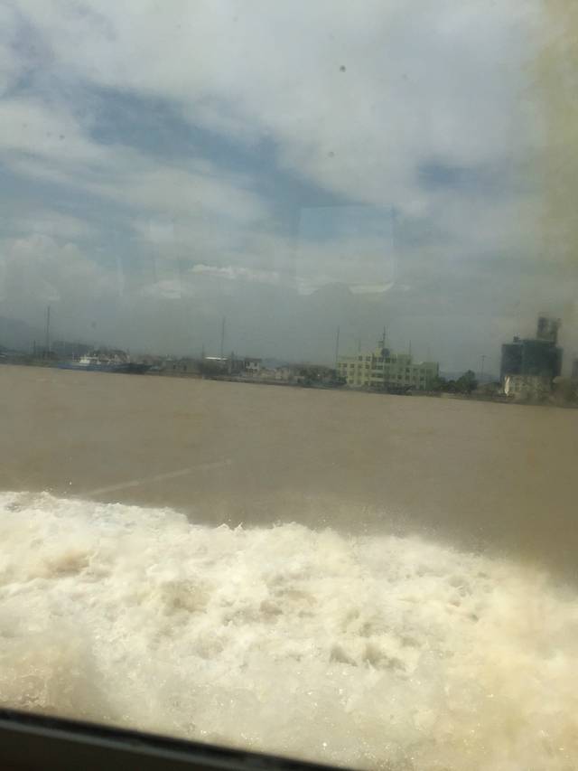 快艇刚开出来不久,海的水还是黄色的黄泥水,慢慢的才会越来越清澈。快艇开过溅起的水很大,落下来的时候很漂亮,有种大珠小珠落玉盘的感觉