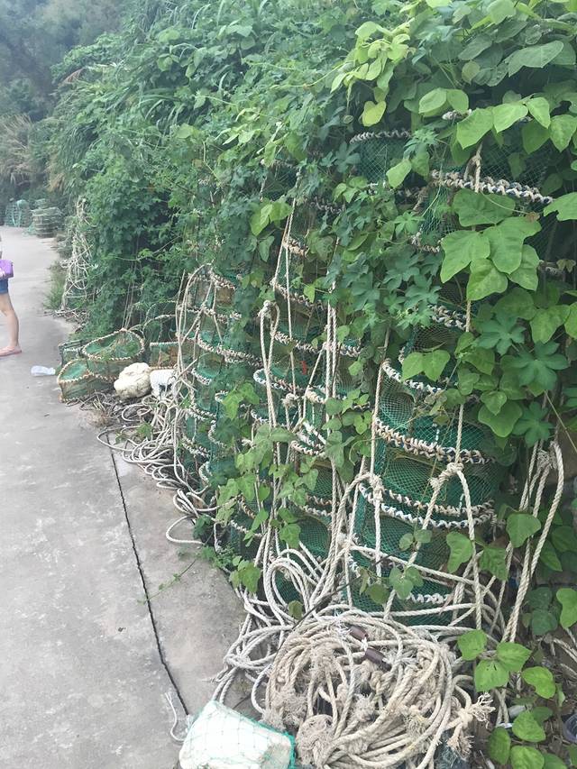 早上起太早,回去住处补补觉,下午3点出发去沙滩,路上当地的渔民放的鱼篓子很有感觉,忍不住拍了几张。沙滩上人还不算多吧,沙是真的超级软,脱了鞋子赤脚走真的很爽
