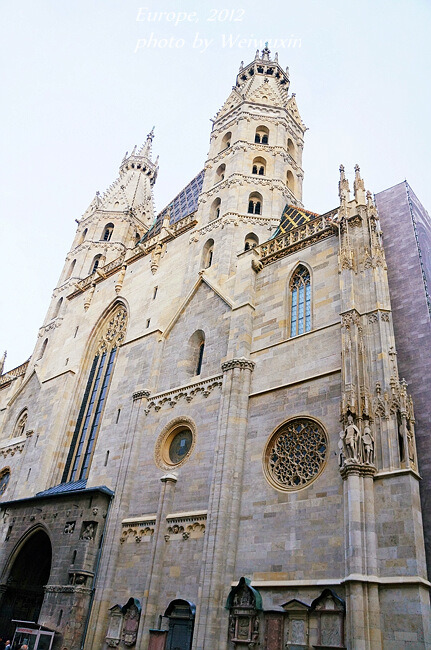 史蒂芬大教堂是奥地利维也纳最出名的教堂,也是欧洲最好的哥特式教堂之一。其外部最引人注目的是其高大的西立面和罗曼风格的顶部,而被当地人昵称为Steffl的南塔则是精致的哥特式建筑风格(也有用Steffl来代指整座教堂的说法)。正因为这座纤细高耸的南塔,史蒂芬大教堂将欧洲最高建筑的记录了保持了很长时间——我们在维也纳郊外的美泉宫半山,俯瞰整座城市,一眼就能看到大教堂。