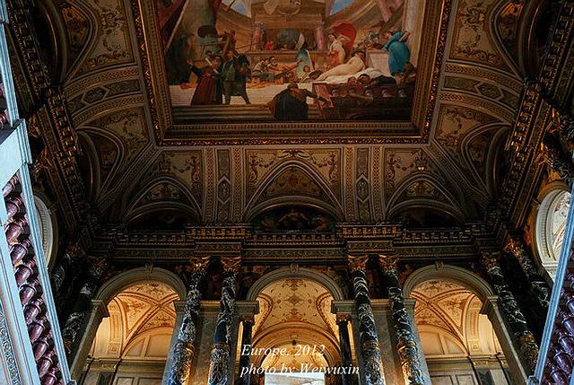 从鹿头旁边的大门走进去,里面的天花板还是很华丽的。