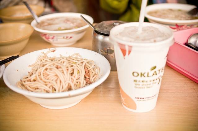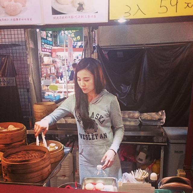我们兵分两路。我和大宝排队买包子。姐她们排队买永康牛肉面。什么店都排队,真是永康街一大特色啊。