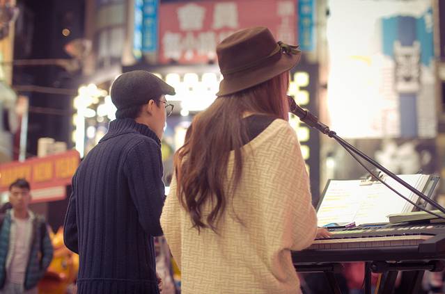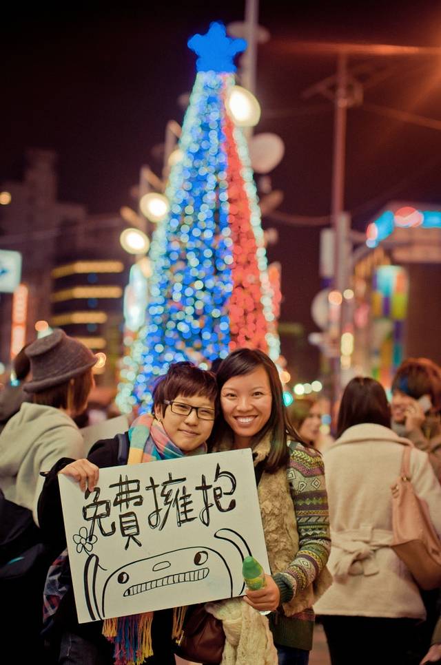 西门町年轻人很多,举着FREE HUG 和FREE KISS的牌子。