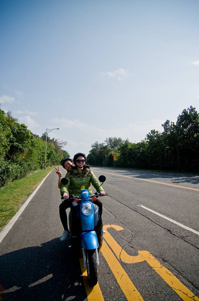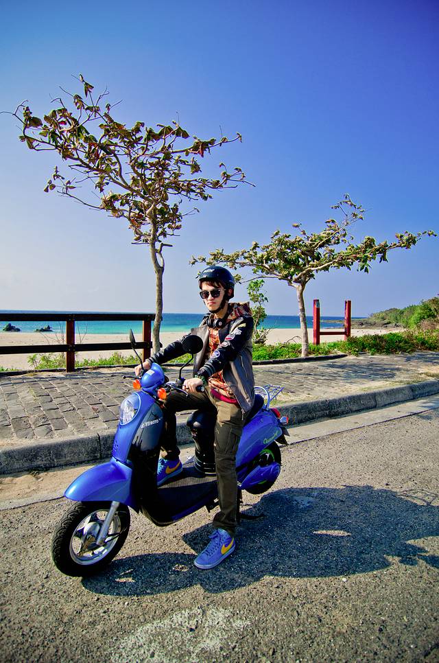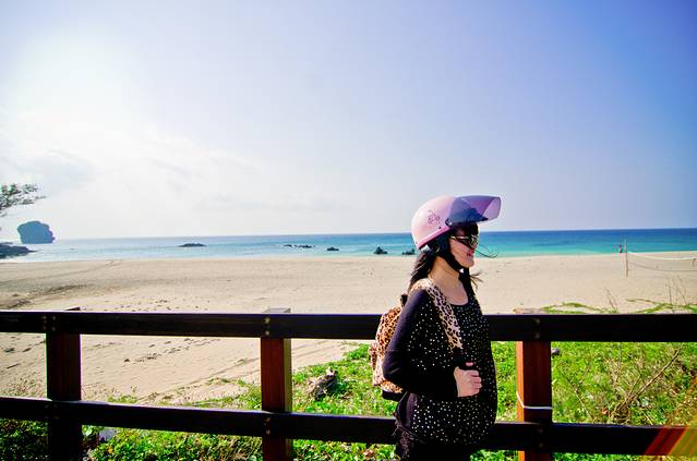 一大早起来租小摩托前往鹅銮鼻。身为厦门人民好羡慕能骑机车的,大宝借到老板娘女儿的KITTY机车帽,倍儿高兴。
