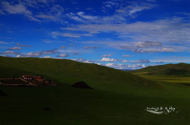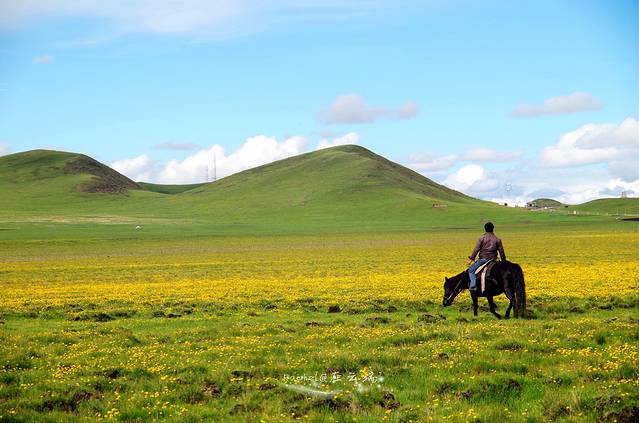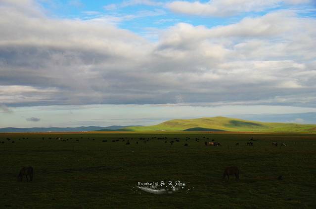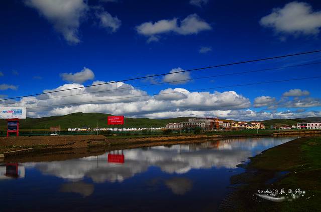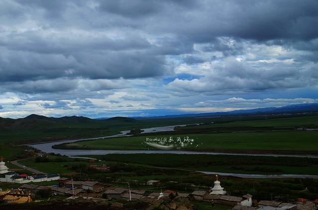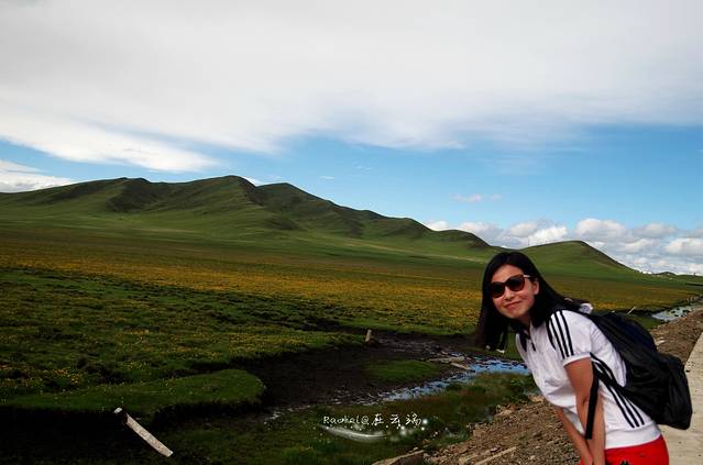 我承认这是一次带点私心的行程,为了满足自己的一点儿小私心,带着头次踏上川蜀大地的孩纸乘车9小时走上川西北;我承认这是一次有点小纠结的行程,在驾车与乘车间摇摆很久,忽悠俩朋友共同自驾,却在最后一刻不知是谁放了谁鸽子,一大早奔向汽车站开始一天弯弯绕绕的长途奔波;我承认这是虽然辛苦,但是也欢乐自在的行程,看看风景,聊点八卦,吃点只有长途车上才会有的食品,带着害怕被领导抓翘班的小忐忑,结果果然被抓的小无奈,9小时的车程其实不算太远;我承认这还是一个拼RP的行程,不过带着RP出门,那么在天气预报早就宣判的情况下,下车的那个瞬间,我们依然迎来了蓝天白云,尽管还依稀能看见连日来阴雨尚未完全消散的氤氲与乌云~就这样,我们来到这个全国第二大草原——若尔盖~