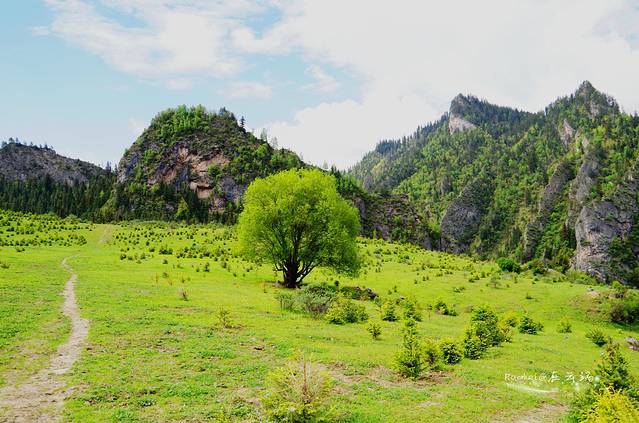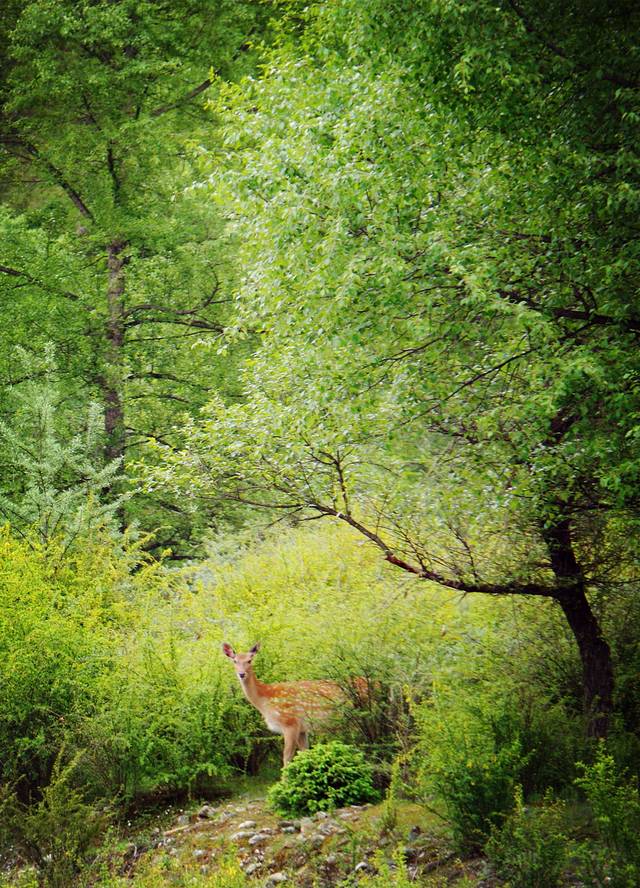 热心的波师傅问我们还想不想看野生梅花鹿,还一再强调不多收钱的。在道路的岔口,我看见了“铁部梅花鹿保护区”的指示,整个保护区分为四川和甘南两部部分,四川这边叫铁部,甘南就叫迭部了,路上途经一个小镇,看着波师傅热情的跟路人打招呼,还以为师傅跑的多了,也就认得了,没想到师傅却说这里是我的故乡......带着对故乡的一份情谊,话不多的波师傅开始给我们介绍起来。然而丛林山水间却并没有看到梅花鹿的身影,大概这个也是要靠缘分的......