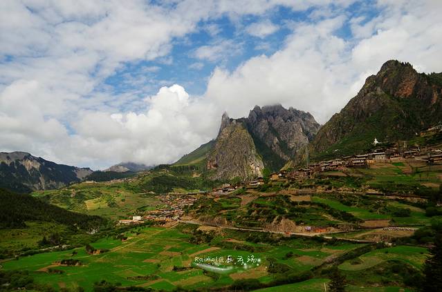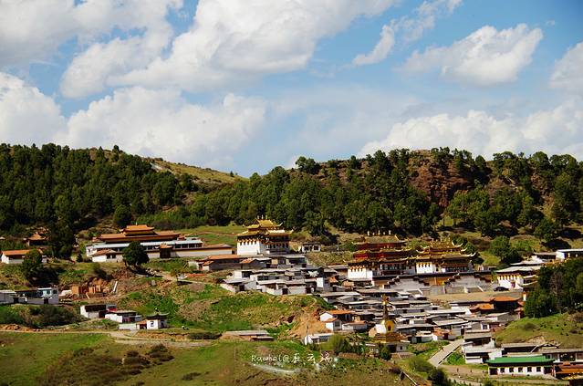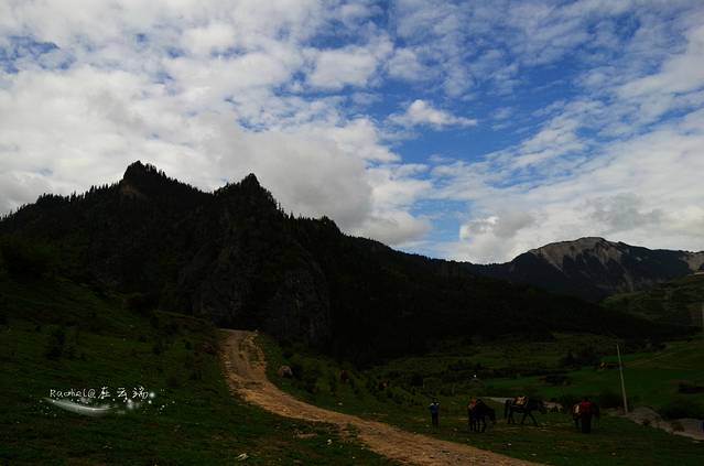 一路上,昏暗的天气让人有些昏昏欲睡,不过既然已经无限接近,那么怎样的你我都愿意亲近~~突然感觉到后颈一阵光热的温暖,回头,看见了云层渐渐散开后的蔚蓝~天空,在我们到达扎尕那的时候彻底展露~~