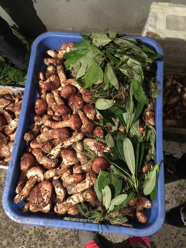 九龙还产松茸,松茸可是好东西,这个新鲜的是200一斤,据说是当初日本被原子弹炸过以后,什么都没存活下来,但是只有松茸活下来了,这样就证明了这个东西是抗癌的,本身蘑菇嘛吃了也对身体好,更何况是能抗癌的蘑菇呢,对把!这个煲汤真的是很不错,炒肉什么的,哈哈哈,于是自己带了几箱回来!哪个做松茸的大哥一听我是做 淘宝的,一直让我做代理呢,哈哈哈哈!