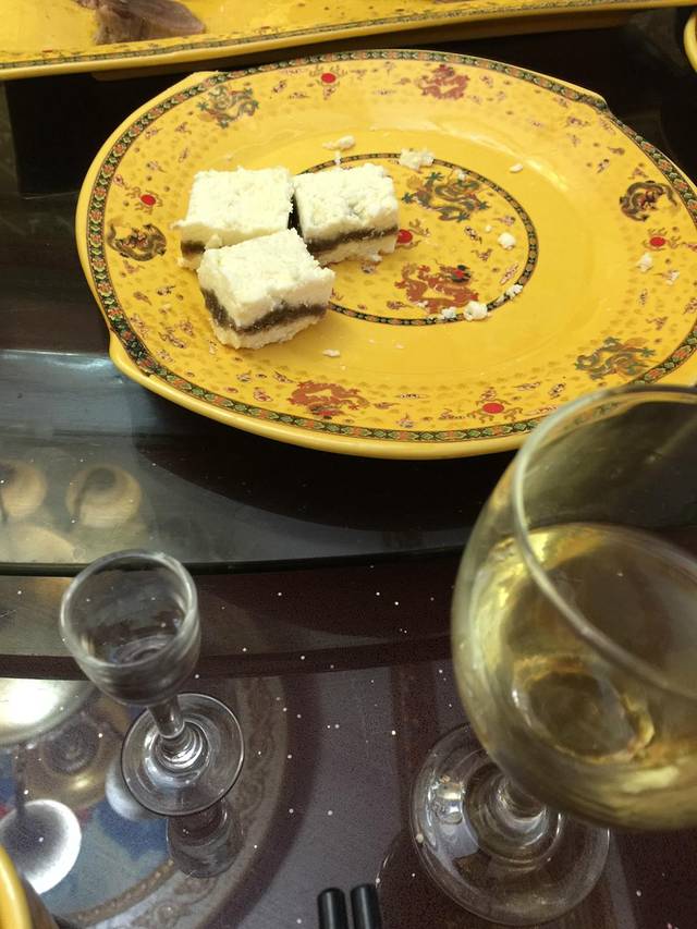藏餐就比较常见了所以也没有照什么,有酥油包子,一咬一口油,一般口味的是HOLD不住的,这个奶油冰激淋,其实是酥油冰激凌,给大家分享一下,看着不错,吃真的是吃不习惯!哈哈哈,还有喝的是马卡白酒!
