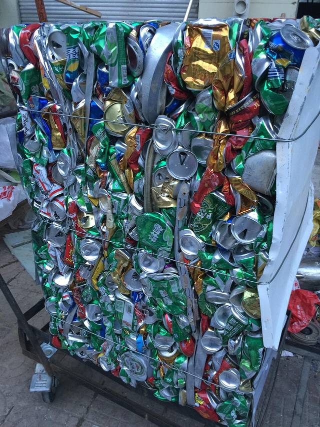 随便拍的,第一次见原来易拉罐是被压缩成这样回收的,给大家也涨涨见识吧。