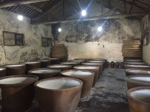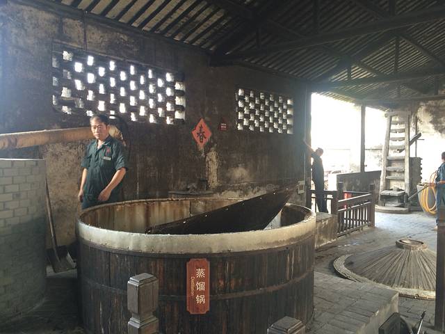 酒坊的酒香很浓。酿酒师傅们四个一起才能把蒸馏锅的大锅盖抬起来。可是把力气活,想起了“九儿”那部电视剧里的情节。。。