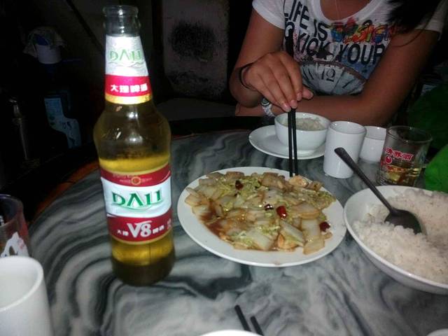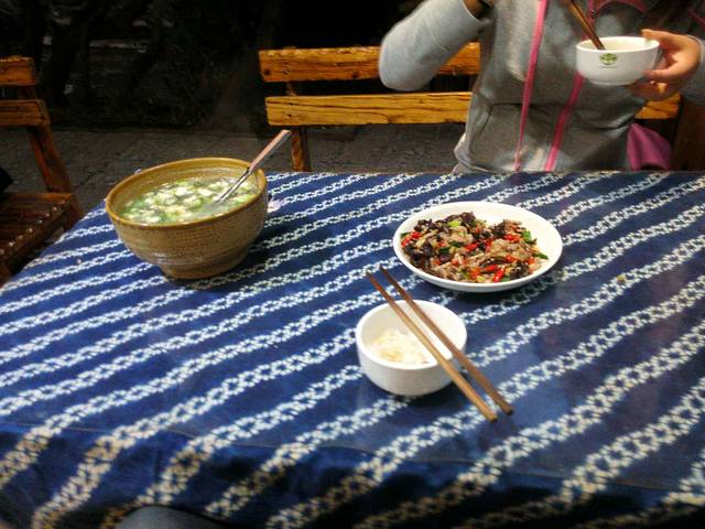 9.15真美客栈旁晚餐:重庆小面76rmb,木耳炒肉、青菜、紫菜蛋汤。很下饭的饭菜,汤也很清淡,对于丽江纳西族的酸辣咸还是很不错的。