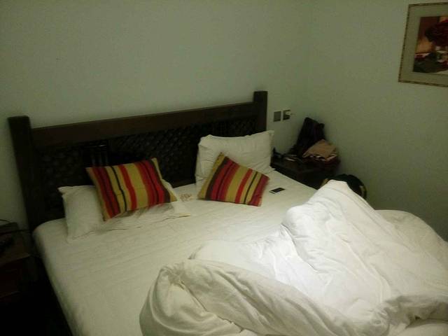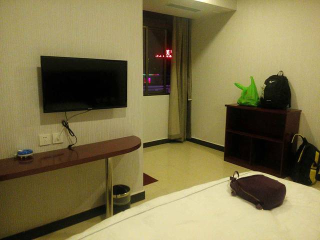 在去哪儿酒店直销中订的鑫源酒店:温馨大床房:99rmb/天。地理位置:从机场到酒店9分钟,途中经机场高速,从左侧下高速以后经过一段坑洼的村镇小道。交通的话不太便利,如果是自己开车可能找不到。因为酒店有接送所以一般还能接受。