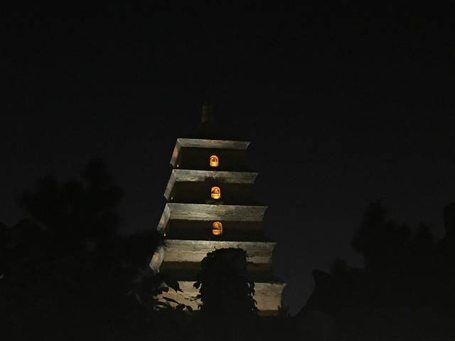 找个角落赶紧来一张,远处的大雁塔绝对是今晚的主角。