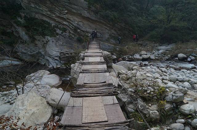 路上也会看到前人留下的栈道,抑或是桥、甚至有些地方还有高墙阁楼的残垣断壁。