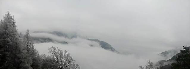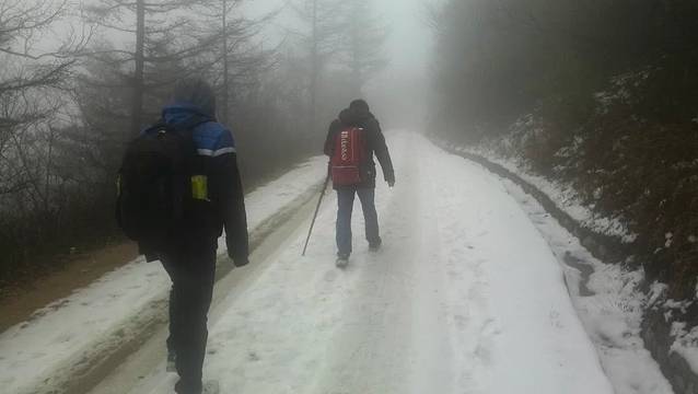 到了分水岭,还没进山,我们就被雪景吓傻了。。其实一开始我是做好山上很冷的思想准备的,于是进入鹿角梁后就跟小伙伴讨论今晚是否要宿营。得出“晚上宿营要死人”的共识后,我们决定速战速决。