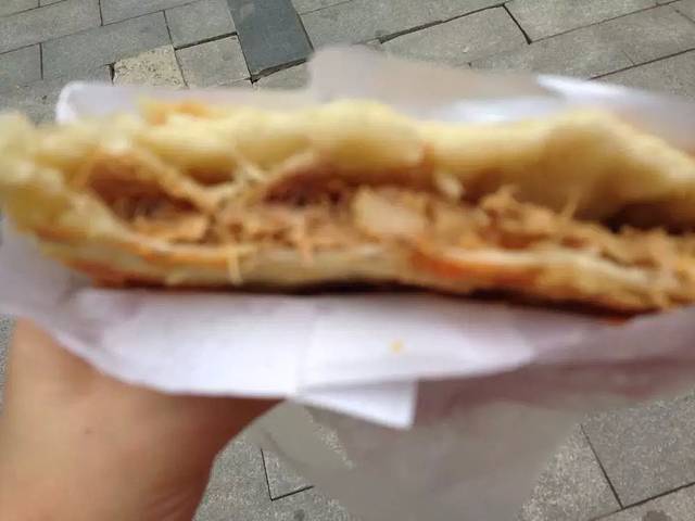 这是早上出发时在一家地铁口旁边的店买的肉夹馍,馍很酥很脆,肉也很好吃!大赞!