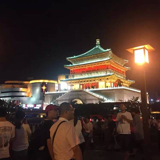 晚上七点多钟,我们决定去回民街逛逛的。酒店走到后面是钟鼓楼,旁边就是回民街啦。晚上已经淅淅沥沥的下起了小雨,可是回民街真是热闹。