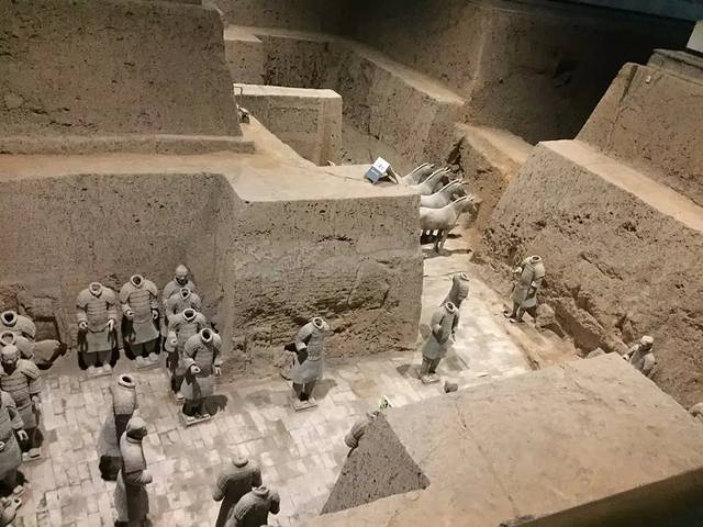 在火车站坐大巴去兵马俑,一个多小时到达目的地。本来打算路上去下华清池,可是因为我晕车,想想就直接去兵马俑好了。兵马俑门票150,学生证半价75,导游90。我们找到一个独自旅游的福建姑娘和我们拼团,姑娘出30,我们出60。三个人加一个导游就开始了我们的兵马俑之旅。导游和我们说,来看兵马俑不找导游,就是活人看黄土,啥门道都看不出来。觉得好搞笑。
