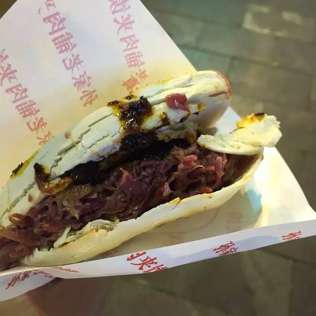 牛肉夹馍!排了好久的队才买到的。因为是回民街,回民是不吃猪肉的,所以整条街的东西都是猪肉和羊肉。15元,我觉得太咸了。