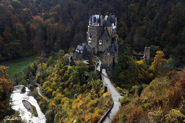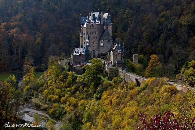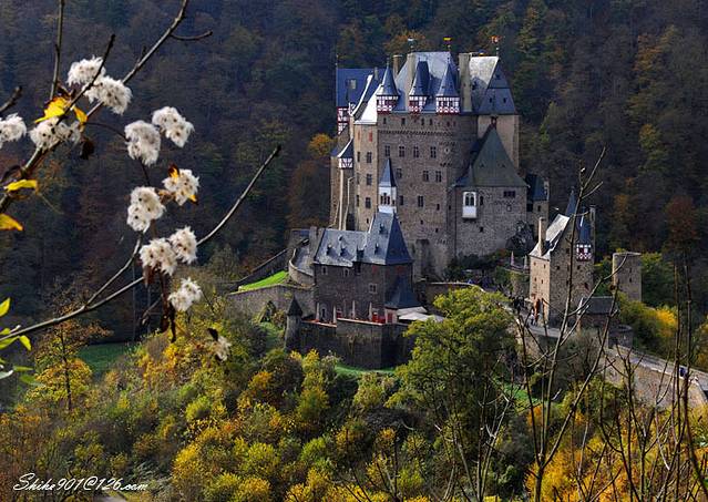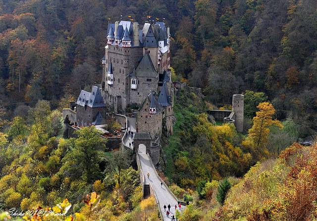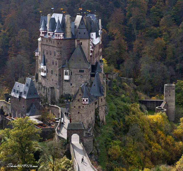 城堡始建于公元9世纪,和其他的德国城堡不同,埃尔茨堡建在山谷里,埃尔茨河绕城堡流过,环境优美,尤其在深秋季节来这里,埃尔茨堡就像镶嵌在彩色树丛中的一幅图画。