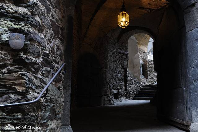 进入城堡要越过一座石桥,穿过拱门,仰视城堡,能感到它的高大雄伟和精美兼具。城堡里有一个展览馆,展有城堡主人的族徽、瓷器、枪械弓弩、日常用品等,由此能看出主人的爱好和品味。