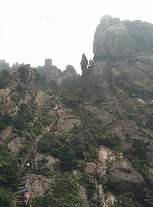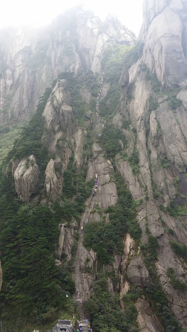 在光明顶稍作休息后,准备下山。途径鳌鱼峰,我没看出来,所以没有拍照片。再往下走,来到了百步云梯。