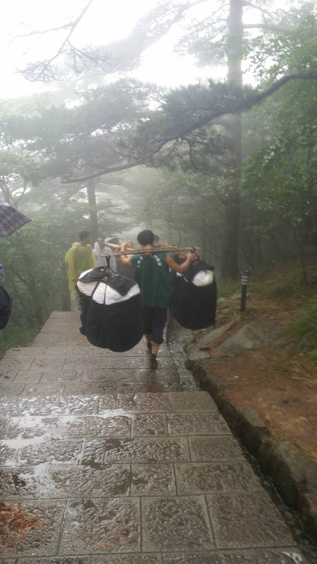 这种天气,使得挑山工更加不容易
