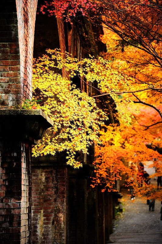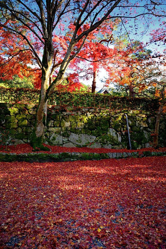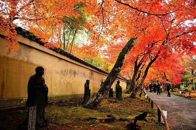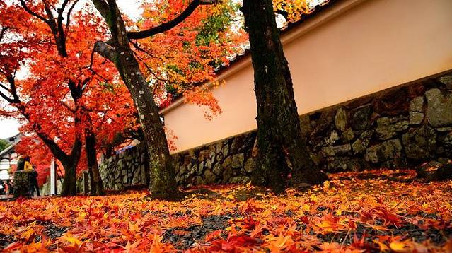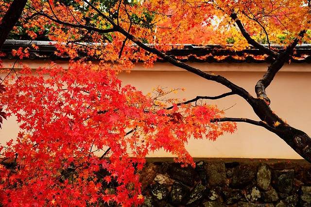 我提这些,无非是想说,京都的秋天,美得让人不敢轻易相信。我给所有打算去京都的人最强烈的建议就是,但凡能选择,一定要11月下旬的红叶季或是4月的樱花季去啊!纵然京都本身已经是个魅力非凡的城市,但红叶季的京都太特别了(没有看过樱花,所以就不提樱花季了)。有些人担心红叶季的京都人山人海,没有了古都的韵味。我觉得并不是这样。除了那些著名的景点,你完全可以轻易地在京都的各个街角与巷尾,以及数不清的寂静庙宇中,寻找到你期待中的景象。