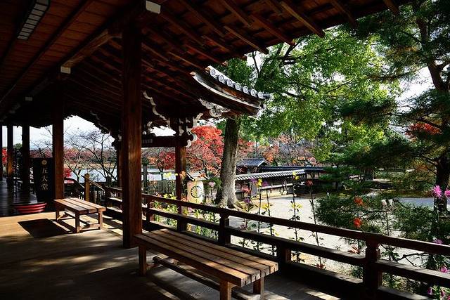 大觉寺并不是个很典型的红叶名所,但很别致。可能由于游客不多,给了我慢下来的心情,脱了鞋踩着地板和地席在寺里的各个楼阁间兜兜转转,感觉很不错。