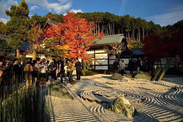 金阁寺是这样的地方-- 一张照片了事,而且所有人拍出来也都差不多,但是却是你必须来的地方。因为它就是京都独一无二的标志!进了寺门随着人流走,用不多久,那个你一定已经在无数游记攻略里看到过的画面就会出现在眼前--水中的金阁在阳光下熠熠生辉。对了,一定选一个晴天去金阁寺。