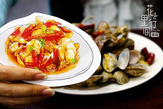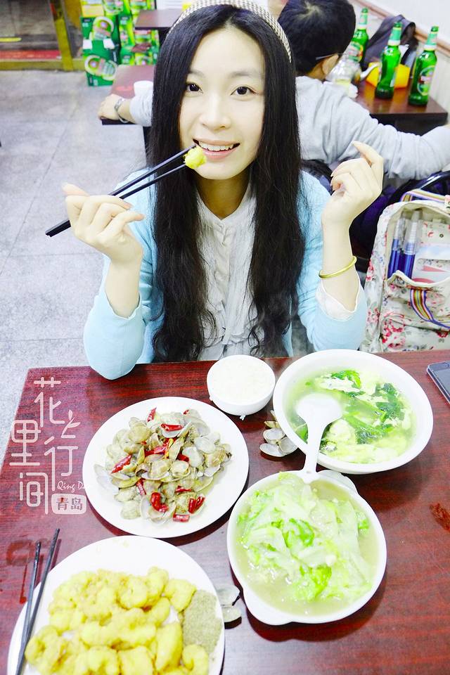 青岛的第一顿晚餐,我们选择了网上比较热门的"九龙餐厅"。地址非常好找,就在劈柴院不远的路边,正值淡季,人并不是特别多,我们两个人点了四个菜,辣炒蛤蜊,炸虾仁都是手绘攻略上美食册上推荐滴,味道还不错