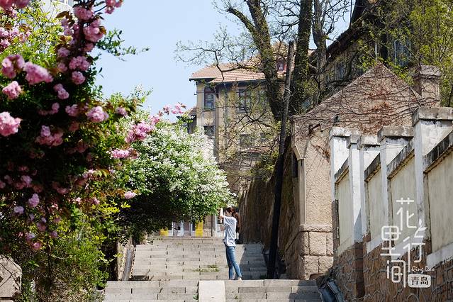 步行,才是游览这个城市的最佳方式,闲庭信步,穿街走巷,推开某扇半遮的大门,豁然开朗的是一片精致的别院,或许有一棵开满了樱花的樱树,或许有一排伸出墙外的小花。这可能是某个名人的故居,也可能是青岛居民的住宅。