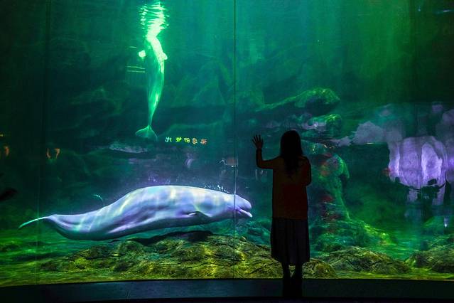 极地馆的明星非北极熊跟白鲸莫属,这两个展位一直都是满人。