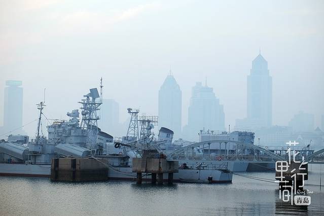 小青岛边上的海军博物馆,在海雾的衬托下,更加有气势