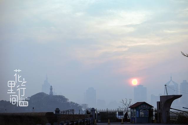 从康有为故居出来到小青岛也就一公里的路程,我们走过去的时候刚好碰上落日,虽然有点水雾,但在青岛算是第一次如此开阔的日落,还是挺震撼的。