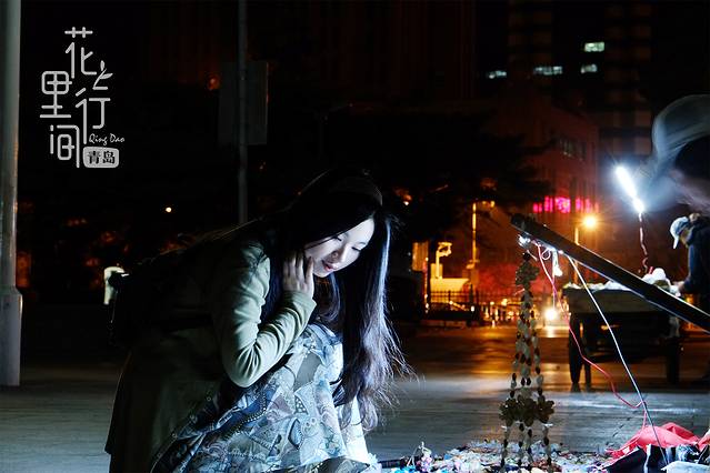 五四广场夜景,广场下面其实很热闹,遇到了一群游客,在放烟花和放孔明灯。
