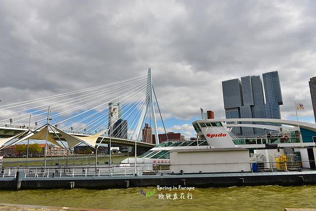 河边道路旁矗立着各国的国旗,这里是一个国际化的大都市。虽然说我是不太喜欢大都市的旅行的,不过能够欣赏现代化建筑造型的精髓,鹿特丹还是值得一看的。