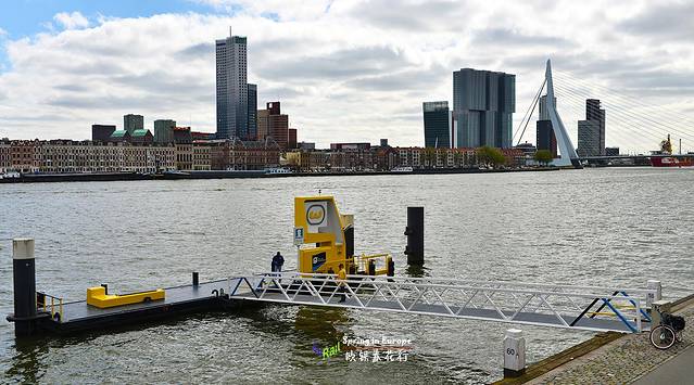 新马斯河畔的鹿特丹Erasmusbrug水上巴士码头,还是很人性化的,有玻璃幕墙搭建的候船室,以防风雨季节乘客遭到侵袭。很多市民都是骑着自行车来搭乘水上巴士的,对他们而言,这就是日常出行的交通工具。