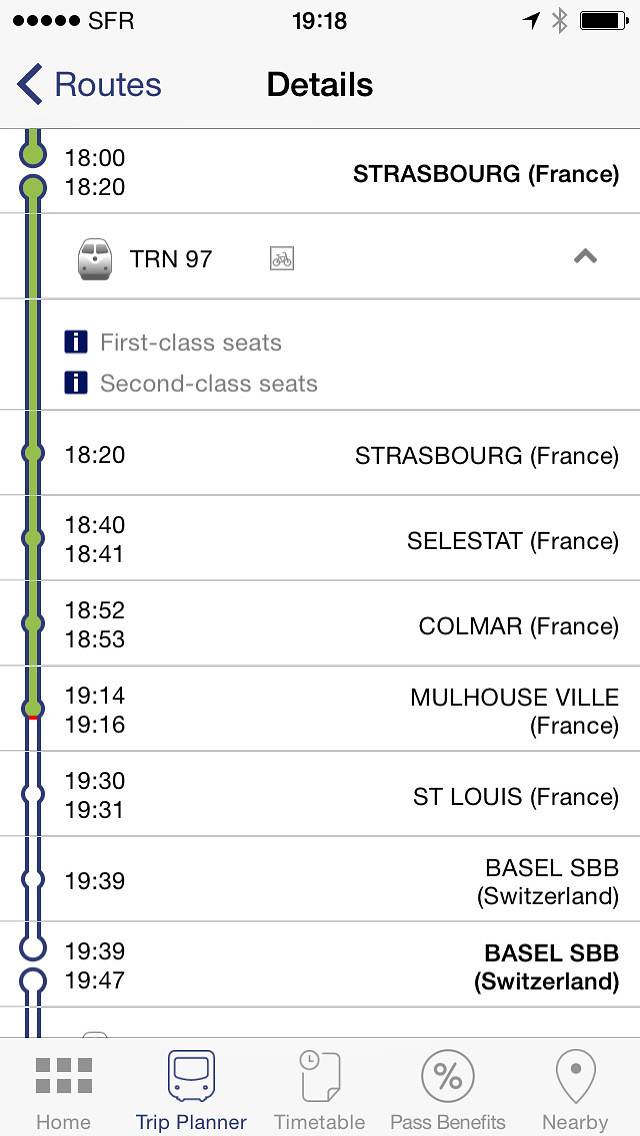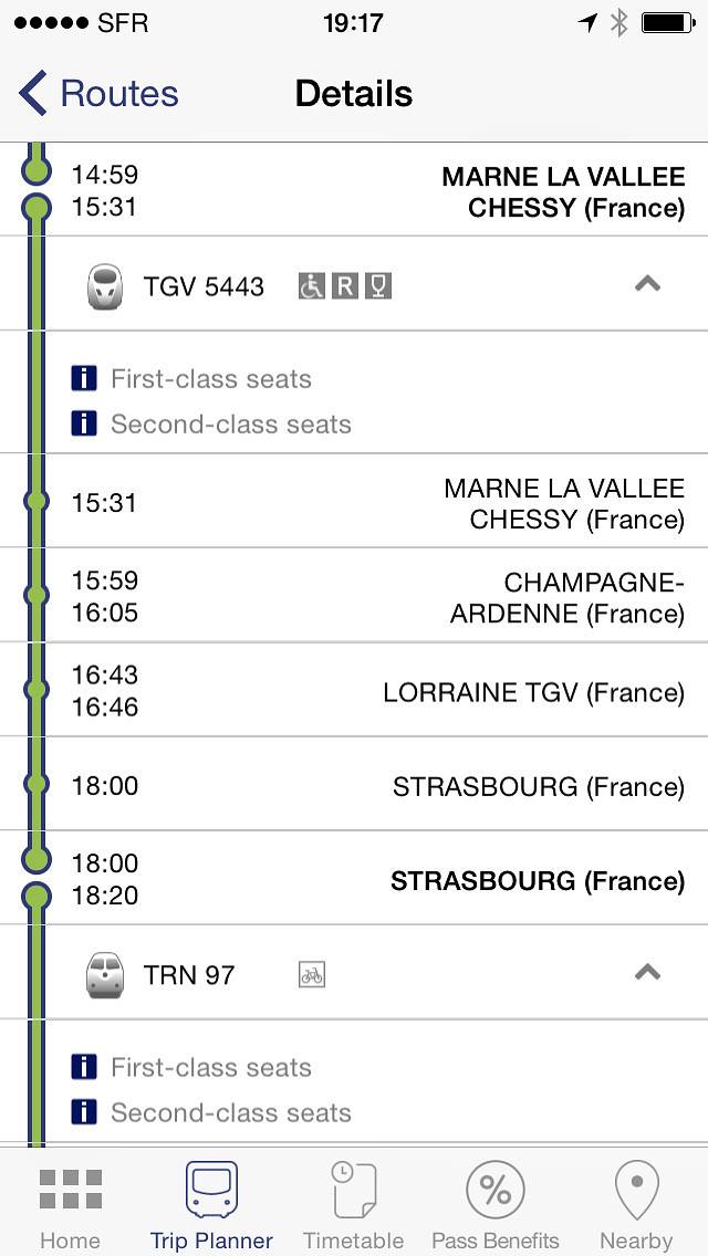 更改后的行程变成了从里尔出发,经过巴黎迪士尼附近的CHESSY转车到斯特拉斯堡,从那里再转车进入德国境内到瑞士的巴塞尔,最终从巴塞尔抵达苏黎世。