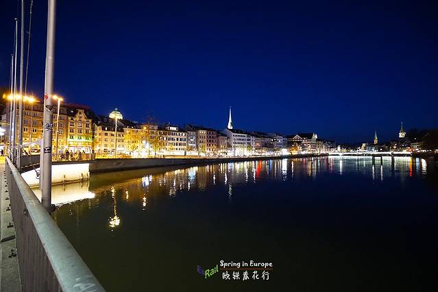 晚上九点多,终于抵达了苏黎世火车站。好在我们预订的酒店离开车站很近,拉着箱子跨过利马特河上的大桥就到酒店入住。利马特河的夜景非常迷人呢!