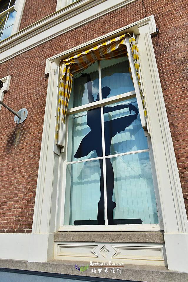 从Kinderdijk摆渡码头到小孩堤防风车村的入口,步行距离在1公里左右,最简单的走法就是顺着码头往镇上去的路走到底,然后左拐一直走就可以到了。路的两边都是当地的民居,窗口的绣球花插得好优雅。
