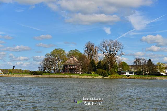 摆渡船离开Ridderkerk码头,这里的河水清澈湛蓝,天上白云朵朵,掐指一算,今天适合摄影,哈哈!