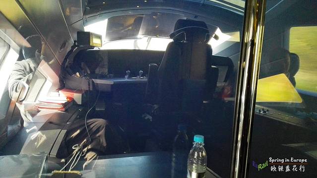 我们的一等座紧邻着列车的驾驶室。不过现在火车正朝反方向在开行,这个驾驶室内是无人的。